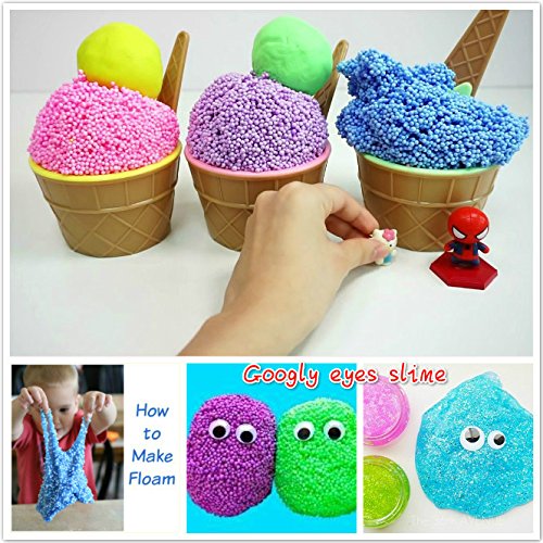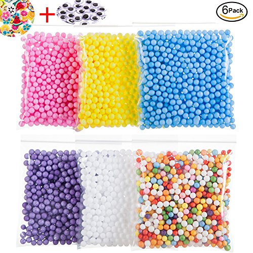 Foam Beads for Floam Slime - Big Styrofoam Foam Balls 0.23-0.30 Inch with Fruit Splice, Googly Eyes - Decorative Arts Crafts Supplies For Kid's DIY Craft, Crunchy Slime and Home Decor (6 Packs)