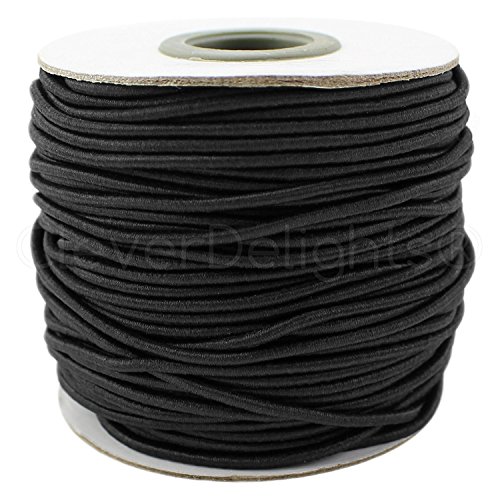 CleverDelights Black Fabric Elastic Cord - 44 Yards - 2mm - Crafts Beading Jewelry Stretch Shock Cording