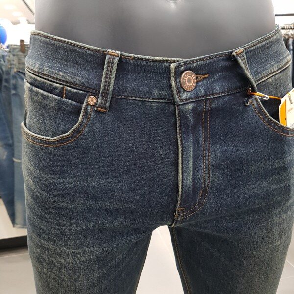 잠뱅이 남성 그린칼라 캣 시와워싱 슬림일자 겨울 본딩 청바지 입니다.