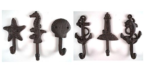 Lighthouse Dolphin Anchor Starfish Seahorse Shell Cast Iron Nautical Hooks Set