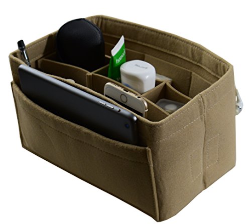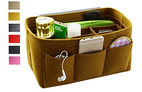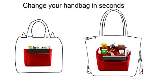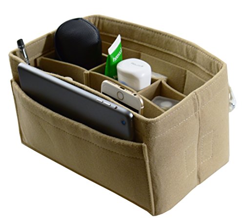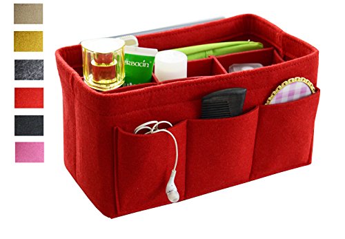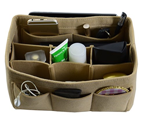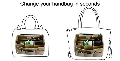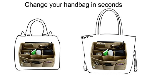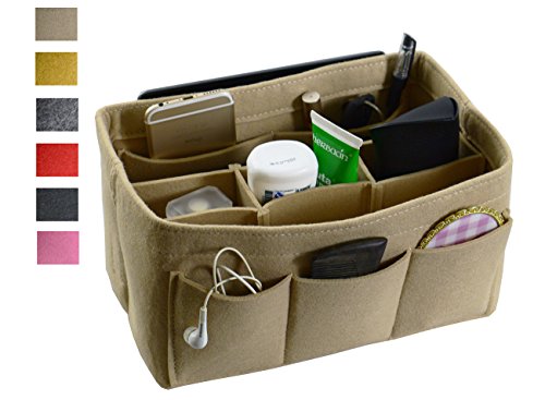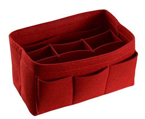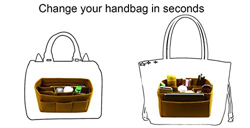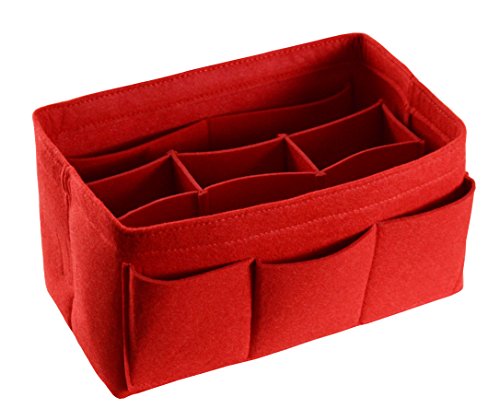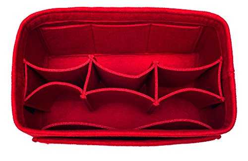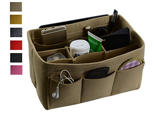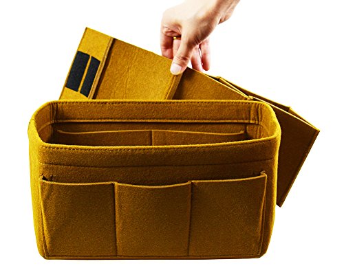 Item Features Very light weight Made of premium quality,100% polyester felt Removeable middle insert according to your demand. Easy clean even with a rag ,hand washable and normal dry. Multi-Pockets, up to 12 pockets,4 exterior pockets, 8 interior mesh pockets ,keep your bag clean, and all belongings well-organized. Fits for a variety of models handbags