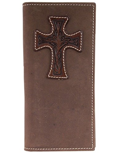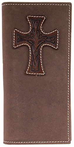 Product DescriptionBrown distressed leather wallet with chocolate brown floral hand-tooled leather cross overlay0
