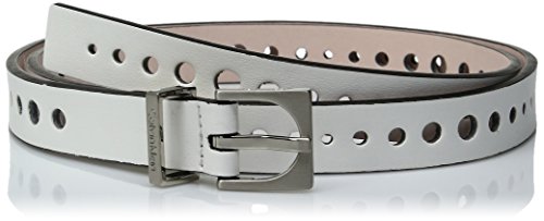 -. Title : Women's 20mm Flat Strap Perforated Smooth Leather Belt