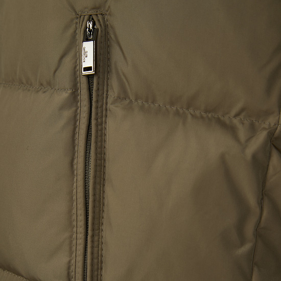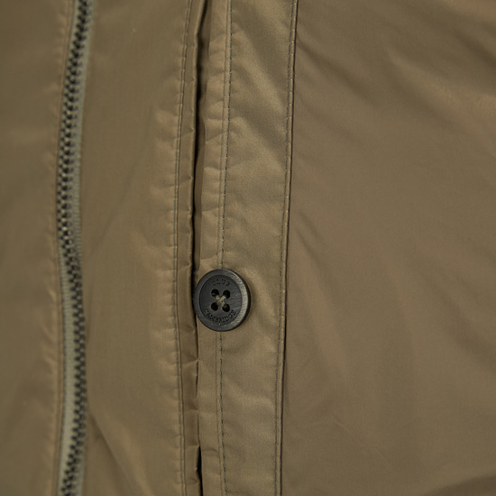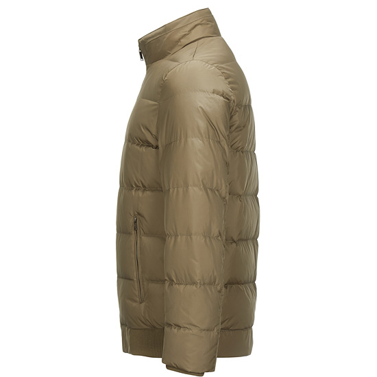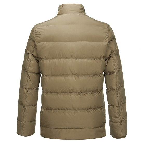 - 가로 퀼팅으로 완성한 반하이넥 남성 구스 다운 점퍼.