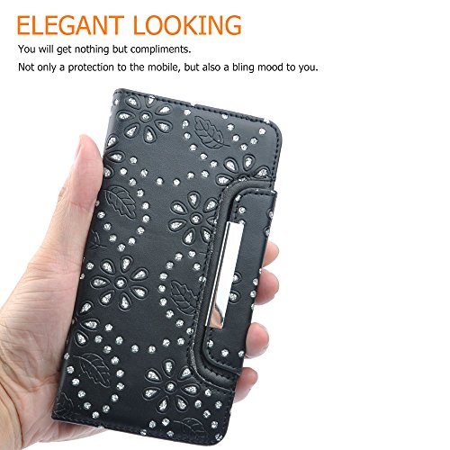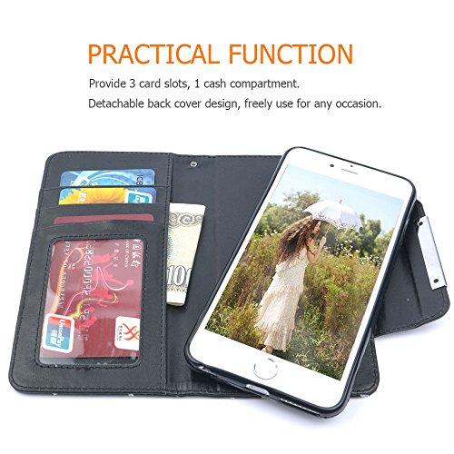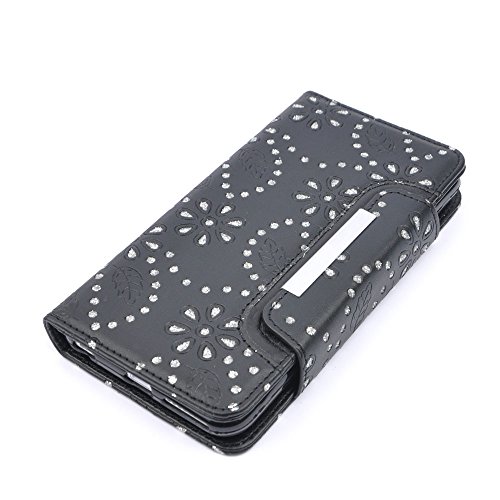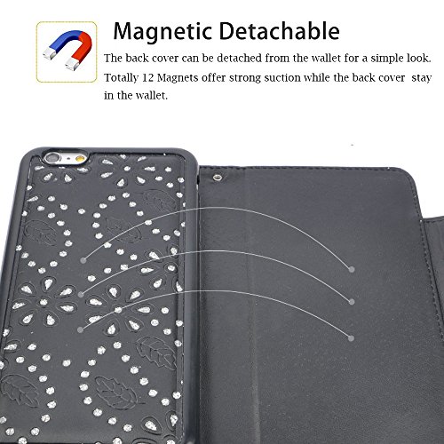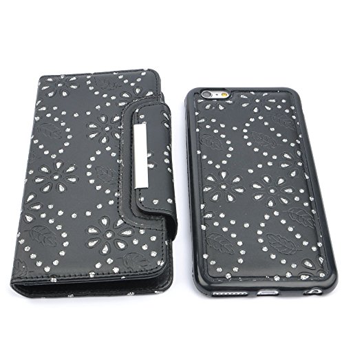-. Binding : Wireless Phone Accessory -. Brand : HESPLUS -. Feature : PERFECT FIT - for iPhone 7 4.7 Inch . / MATERIAL - Premium synthetic leather folio type wallet case ,non-toxic and environmentally friendly. / TWO-IN-ONE CONVENIENCE - Wallet and phone case-in-one design meets convenience at its prime. The inside phone case could be detached from the wallet anytime for your different usage scenarios.It enriches your personal identity yet are still practical. / UNIQUE DESIGN - Sparkle flowers and embossed leaf on the leather provide unique and stylish designs; 3 Card Slots for credit card, ID card or your favorate photo, 1 money pocket for cash. / 360 DEGREE Full PROTECTION - Provides excellent protection and prevents scratches, finger print, dirt and daily wear and tear from accumulating. Included magnetic clip: allows for quick fastening and secure the phone. It also comes with a wrist strap for easy carrying; FREE 1-YEAR WARRANTY. -. Label : HESPLUS -. Manufacturer : HESPLUS -. PackageQuantity : 1 -. ProductGroup : Wireless -. ProductTypeName : WIRELESS_ACCESSORY -. Publisher : HESPLUS -. Studio : HESPLUS -. Title : iPhone 7 Wallet Case, HESPLUS Bling Sparkly Magnetic Flip Folio [Detachable] Leather Wallet Case Cover with Credit Card Slot Holder for iPhone 7 4.7 Inch - Black