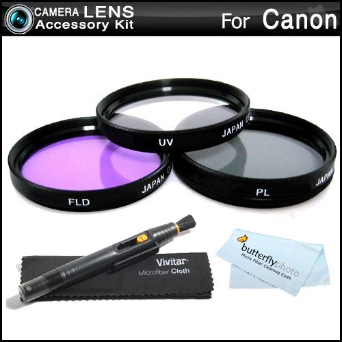 43mm Filter Kit For CANON VIXIA HF M52, HF M50, HF M500, HF R62, HF R60, HF R600 HD Camcorder Includes 43mm Multi-Coated 3 PC Filter Kit (UV, CPL, FLD) + LensPen Cleaning Kit + More