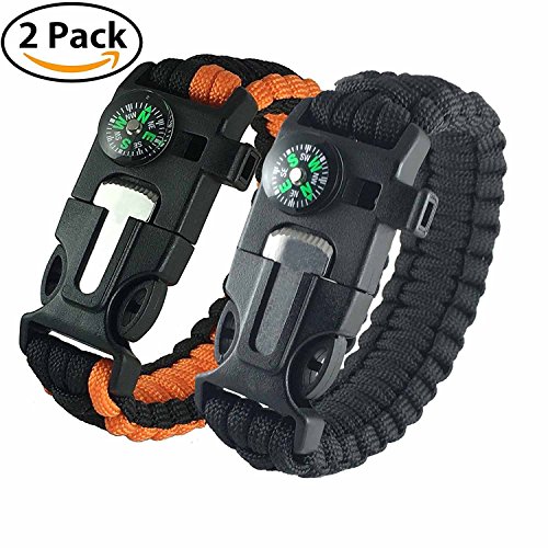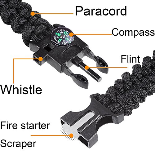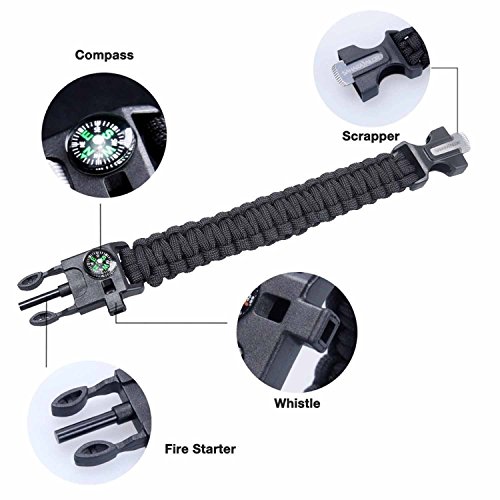 - Survival Multi Paracord Bracelet Embedded Compass, Fire Starter, Emergency Knife, Whistle, Rescue Rope for Hiking Traveling Camping