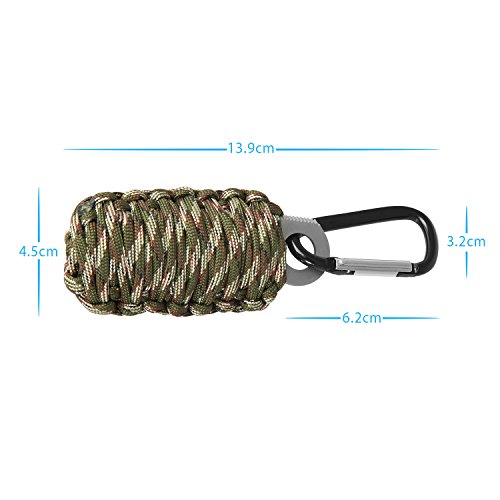 Mini Outdoor Tool 1 Oriketech Emergency Paracord Survival Grenade Kit with 14 Tools Including 550 Paracord/ Fire Starter/ Sharp Striker/ Cutter/ Tin Foil/ Fishing Line/ Fish Hooks for Outdoor