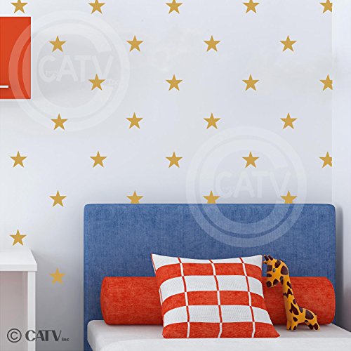 Stars vinyl wall pattern sticker decals (3" set of 48, Metallic Gold)