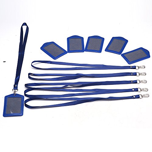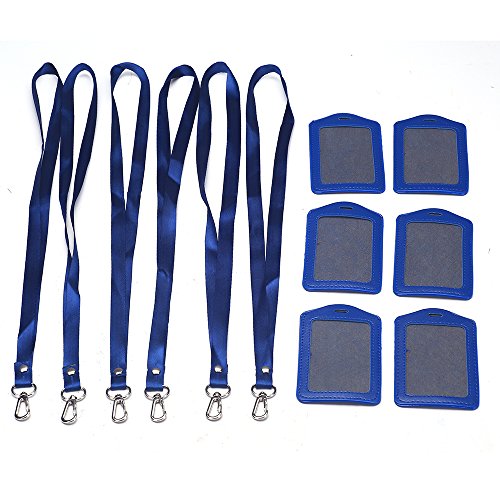 HiseNook Blue 6Pcs Vertical Style Business ID Card Name ID Tag Badge Holder With Blue Lanyard Strap