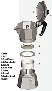 With all the expensive espresso makers sold around the world, native Italians prefer espresso from stovetop espresso makers and more Italians use Bialetti for their stovetop Italian coffee. For an excellent cup of Italian coffee, the classic eight-side household coffeepot is considered a true Italian tradition. The Moka Espress boasts a lot of records and, as such, is the most copied coffee-maker! With sturdy aluminum construction, the Moka Express is a product that actually improves with constant use. The unit is extremely simple to use. Just fill the lower chamber with water and the filter with ground espresso coffee. Place the pot on the stove and heat until the water boils. As it does, the liquid espresso moves to the upper chamber of the pot, ready to be poured into an awaiting espresso cup. After that, all you need to do is enjoy the delicious nectar of coffee.