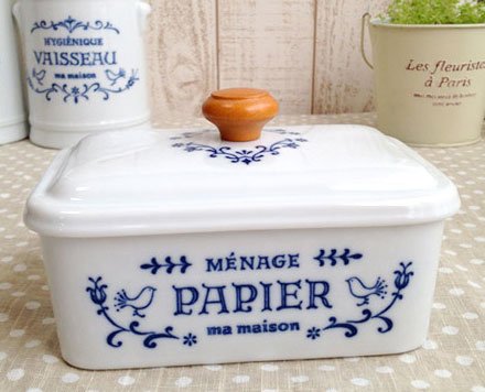In this cleaning sheet container, the letters "MENAGE" "PAPIER" "ma maison".