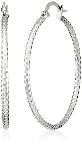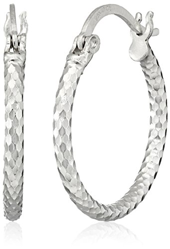 -. Title : Sterling Silver Diamond-Cut Clicktop Hoop Earrings