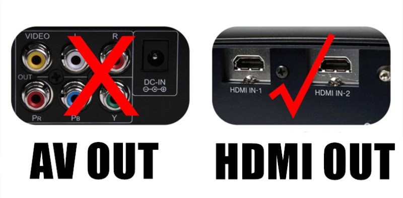 AV input cable allows handheld gaming interface to be displayed on TV screens.
