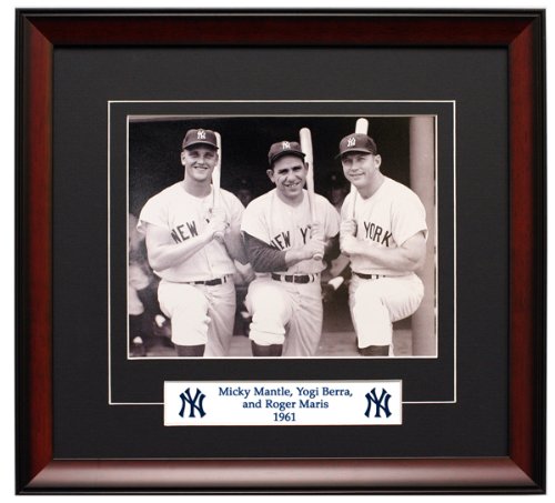 The New York Yankees Roger Maris, Yogi Berra, and Mickey Mantle, Framed, Classic Black and White 8x10 Photograph.