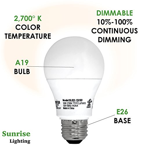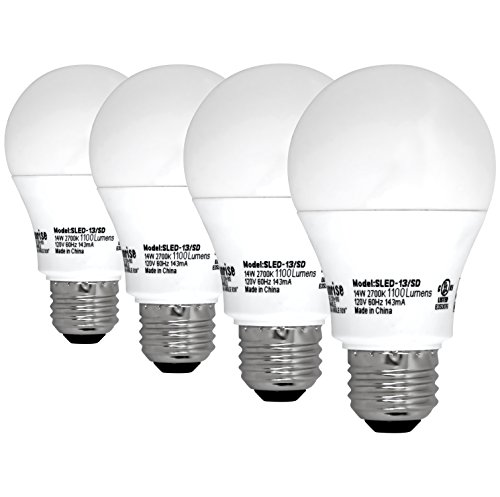 Sunrise SLED-13/SD A19 14W, 75W Equivalent, Soft White Dimmable Bulbs - 4 Pack