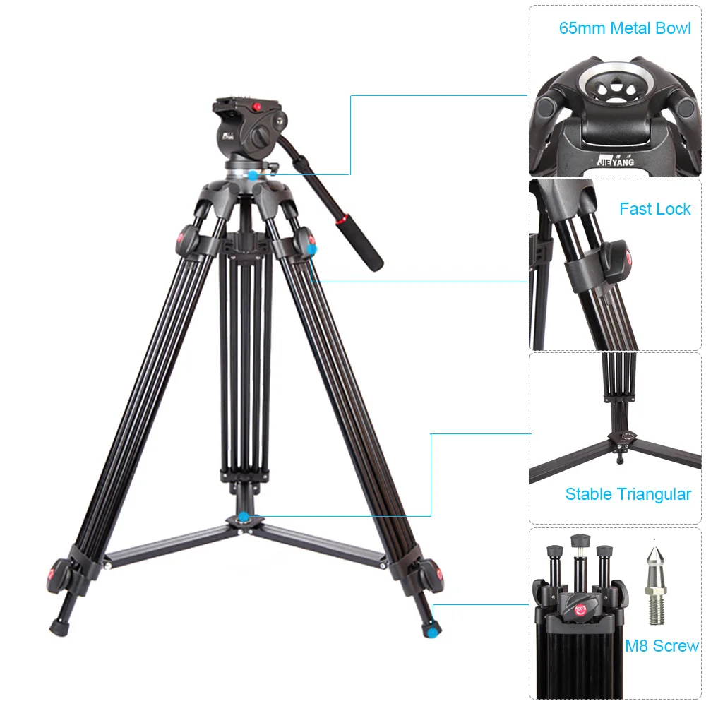 DHL Free JY0508A/B Professional Camera Tripod Aluminum Alloy DSLR Video Tripod with Fluid Drag Head for Canon Nikon DSLR Camera