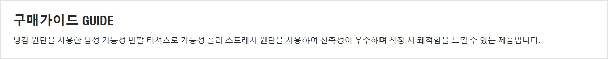 냉감 원단을 사용한 남성 기능성 반팔 티셔츠로 기능성 폴리 스트레치 원단을 사용하여 신축성이 우수하며 착장 시 쾌적함을 느낄 수 있는 제품입니다.