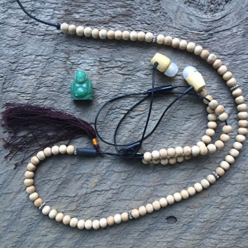 -. Feature : Made with 108 sandalwood and metal mala beads, and sustainable components like bamboo and bioplastics / Premium sound quality with mic for smartphone use with play/pause/answer call function / Includes zippered storage pouch / Tassel comes in assorted colors / Can also be worn as a mala necklace when headphones are not in use