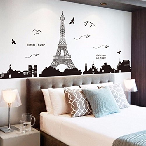 -. Title : Ussore Eiffel Tower Removable Decor Environmentally Mural Wall Stickers Decal Wallpaper For Kids Home living room bedroom bathroom kitchen Office