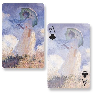 - Feature : Liven up your next game of bridge with these unique and beautiful playing cards featuring fine art images on both the back and face of the card! / Set includes a double deck of bridge-size playing cards, one dozen matching tallies and a score pad. / Double deck of bridge size cards measure 2-1/4" x 3-1/2" / Set packaged in a beautiful gold gift box. / This set, featuring the artwork of Claude Monet, makes the perfect gift for discriminating bridge players.
