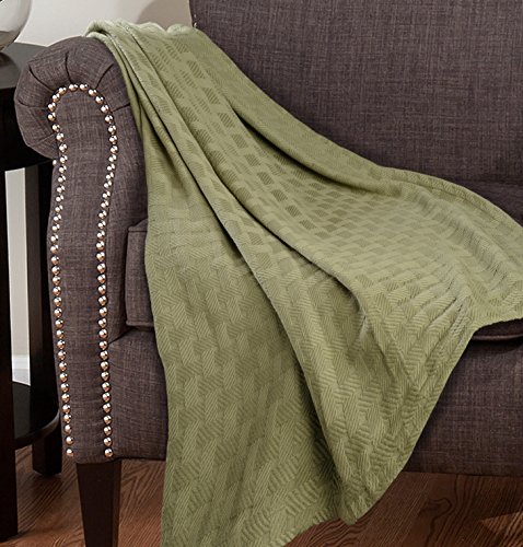 Superior 100% Cotton Thermal Blanket, Soft and Breathable Cotton for All Seasons, Bed Blanket and Oversized Throw Blanket with Luxurious Basket Weave Pattern - King Size, Sage