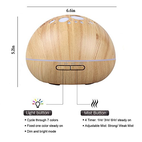 - Adjustable Mode: Strong Mist and Weak Mist. Huge 300ml capacity for 10 hours of continuous use; 1h, 3h, 6h timer, and continuous mist mode to choose from.