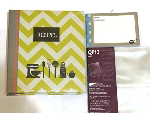 C.R. Gibson Blank Recipe Book Binder With Tabs - Kitchen Gear Bundle With 40 Count Recipe Cards and Pocket Page Refill 20 Sheets