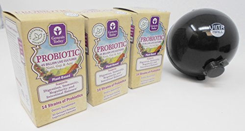 3-Pack Viita Ball Bundle.Plant Based Nutrition-Balanced proportions of bacteria and other microbes within the human digestive system is integral to the normal development and maintenance of good intestinal healthGenesis Today Probiotic Plant-Based, 30 Vegetarian capsules Expires 4/6/2019Feature
