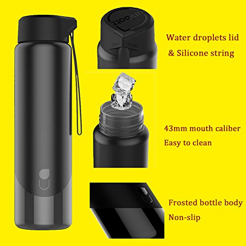 Patent bottle Lid appearance: ultra-effort of the drop-shaped lid, easy to open and close, it has a tough silicone string on the lid, feel fine and easy to carry. The lid is equipped with high-quality elastic seal,make the bottle and lid close tightly, even if the shaking is not leaking.