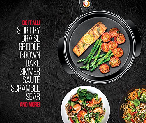 With the Chefman Electric Skillet you can make breakfast, lunch, and dinner all in one pan. Multi-functional pan offers a variety of cooking styles; stir fry, braise, griddle, brown, bake, simmer, saute, scramble, sear. Extra deep 12-Inch non-stick cooking surface and temperature range of 200 to 425 Degrees offer a wide variety of cooking options; make your favorite dishes from vegetables, fish, chicken, steak, and many more! Removable & adjustable temperature control, cool-touch handles and knob, and tempered glass easy view lid add to ease of use. Get the most out of your purchase; Includes access to Club Chefman for hundreds of recipes, tutorial videos, personalized help from a Chef, and more! cETL approved with advanced safety technology for long lasting durability, 30 Day No-Questions Asked Money-Back Guarantee, & 1-year hassle-free warranty provided by ChefmanFeature
