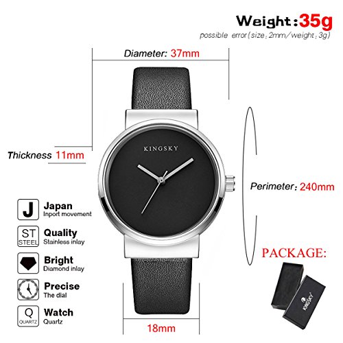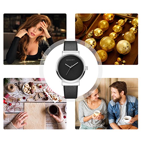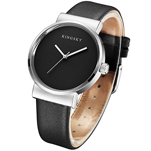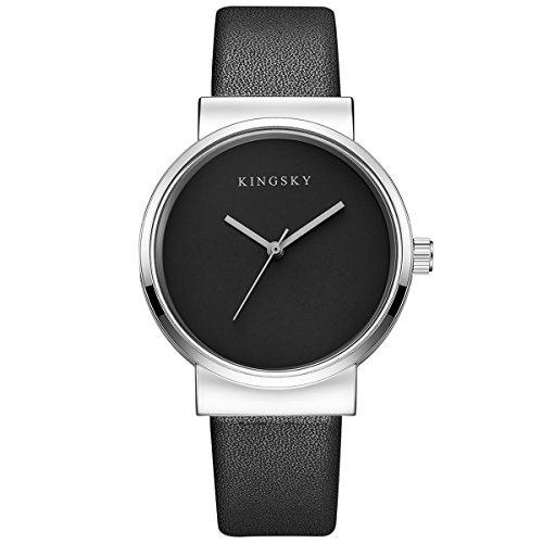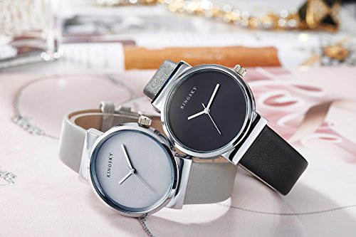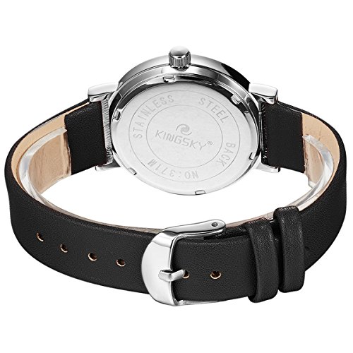 KINGSKY Women's Super Simple Design Multi-Color Leather Strap Japan Analog Quartz Movement Wrist Watches (Silver-Black)