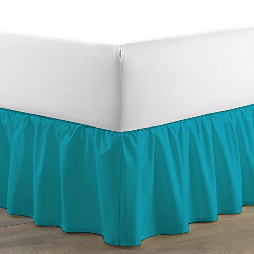 SUMMER CLEARANCE SALE 50% LOW PRICES BED SKIRT Hypoallergenic Hotel Collection 600 Thread Count 100% Egyptian Cotton Bed Skirt with 14 inch drop Solid (Dust Ruffle Bed Skirt) (Turquoise Blue, Queen)