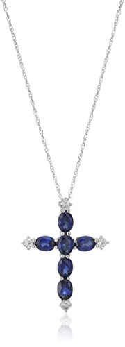 -. Title : XPY 14k White Gold Created Blue and White Sapphire Cross Pendant Necklace, 18"