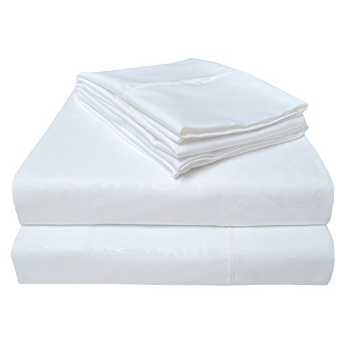 Wrinkle Resistant 3000 Series Ivy Embossed Bed Sheet Set with Bonus Pillowcase Set, Full, White