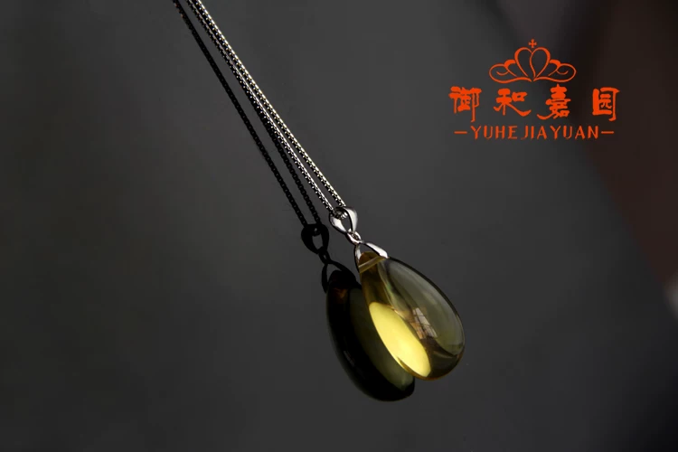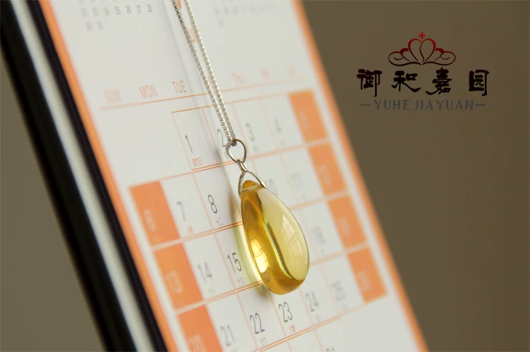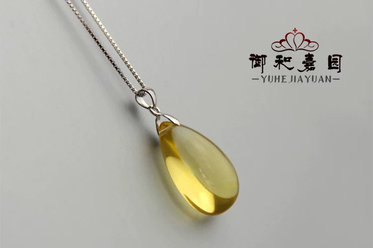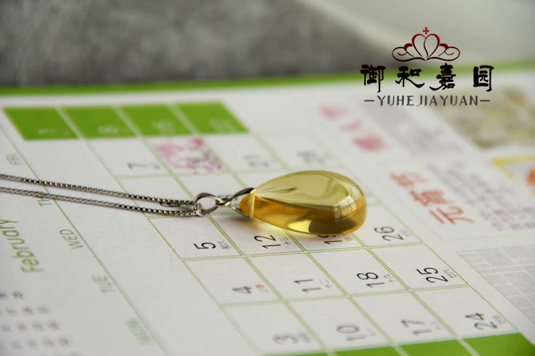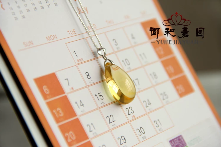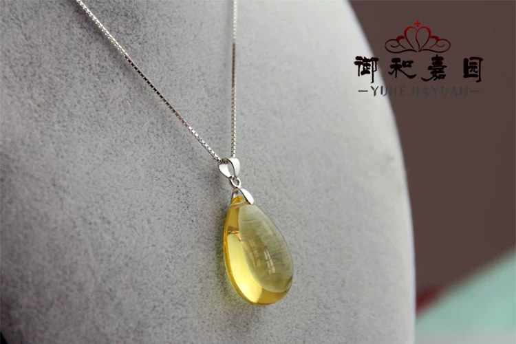 天然黄水晶水滴吊坠配925银链