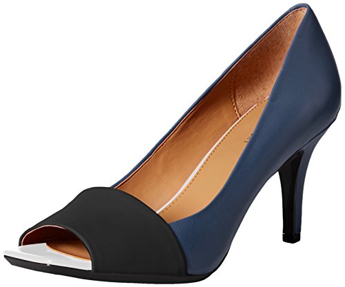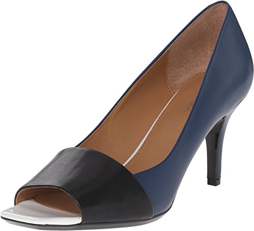 Part of the Calvin Klein essentials package, NAREEN is a mid-heel peep toe pump perfect making it a perfect transition shoe for work to drinks!. with color block detailing in spring's newest colors this will add a nice pop for warm weather days. GEL pod insert for added comfort.