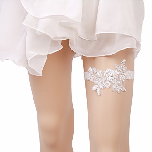 Bueer Wedding Bridal Bridesmaid Lace Garter Set Keepsake Toss Tradition Vintage (3-Pure Ivory Pearl Lace Bloom)