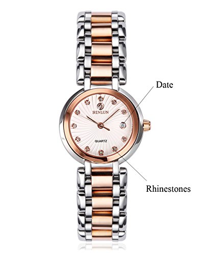 BINLUN Ladies Diamante Luxury Dress Watch Rose Gold Stainless Steel Bracelet Quartz Watches for Women