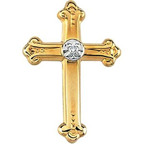 -. Title : Diamond Cross Lapel Pin in 14k Yellow & White Gold