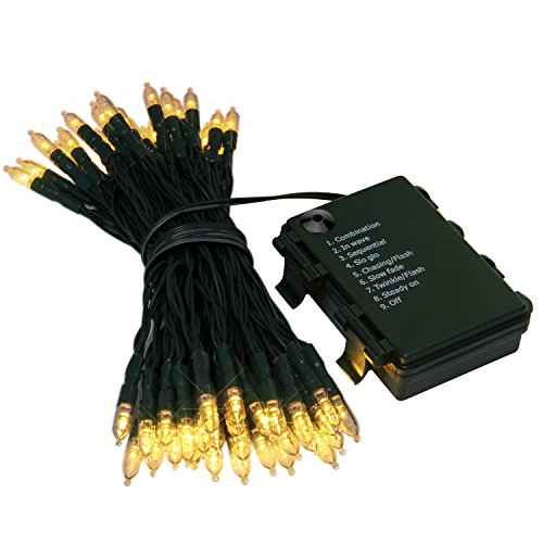 -. Feature : Battery Operated Christmas String Lights: 3 x AA size 4.5V (Not Included), portable and easy to use. / Timer Fairy String Lights: 6 hours "ON" and 18 hours "OFF". This Timing program provides a set-and-forget operation; The timer function will work automatically. To turn them off simply set them to the off position and that will cancel the timer. / 8 Modes and Memory Function Decor Lighting: Variable brightness settings (8 Modes: Combination,In Waves, Sequential, Slo Glo, Chasing/Flash, Slow Fade, Twinkle/Flash, Steady On) provides the perfect solution for your decorative lighting needs. / Waterproof & Safe String Lights: IP65 can work indoor and outdoor, even in rainy days. / Widely Used Light lamp: outdoor, indoor, room, window, office, wreath, party, wedding, garden, patio, lawn, porch, gate, yard, bedroom, kitchen, Christmas, Easter, other celebration events or simply to give your home a novel warm inviting glow.