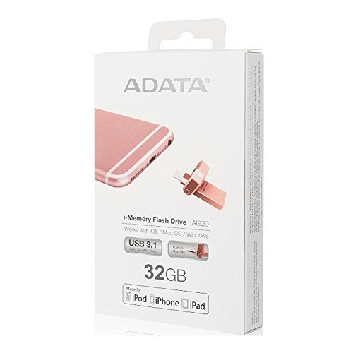 Adata AAI920-32G-CRG 32gb Rose Gold Lightning/USB 3.1 Flash Drive for iPhone, iPod, iPad, iOS Device