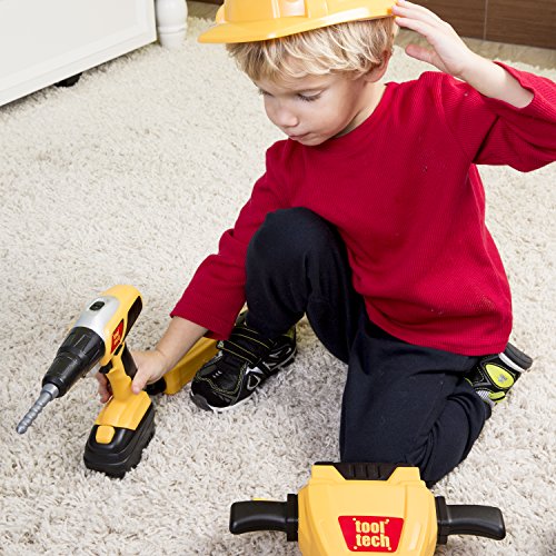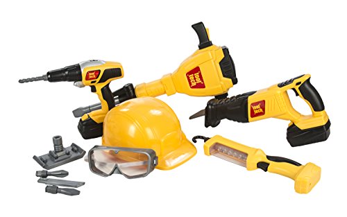 There's big work to do and here are the tools to get the job done! With realistic sounds and actions, this 10 pc. playset includes a 19 1/4" L. jackhammer, drill, reciprocating saw, LED work light, goggles, and helmet.Feature