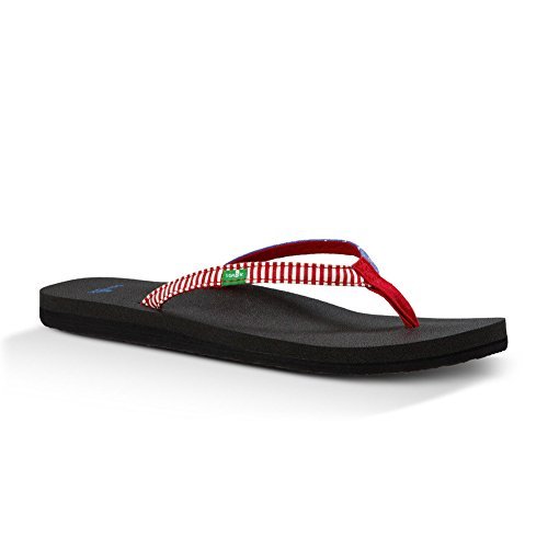 Women's Sanuk, Yoga Joy Thong Sandal Feel happy when you slip these sandals on! Fabric upper Thong style sandal for an easy on and off Fabric lining EVA cushioned footbed for added comfort Textured manmade outsole. Heel Height of 0.75 inchesFeature