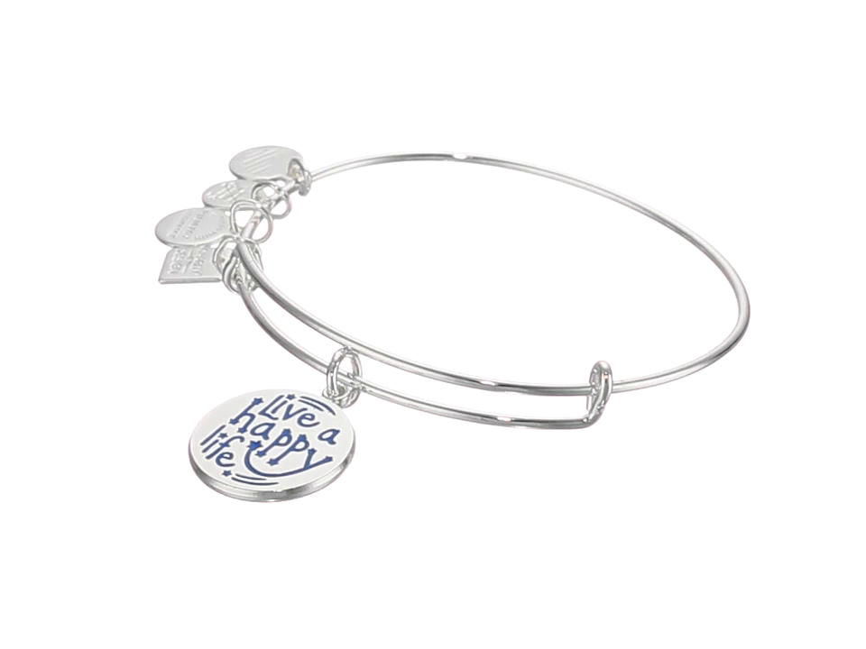 Alex and Ani Charity By Design, Live a Happy Life Shiny Silver Bangle Bracelet