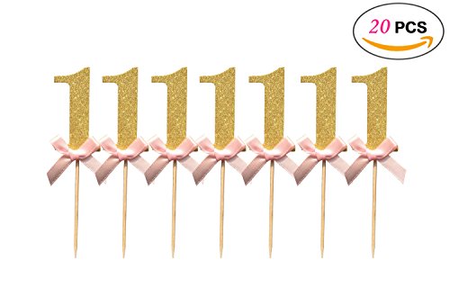 - "Package included: 20pcs glitter digital 1 With Baby Pink Bows。Each ""1"" size:4.5 cm / 1.76 inch,total height 11cm/4.3"".