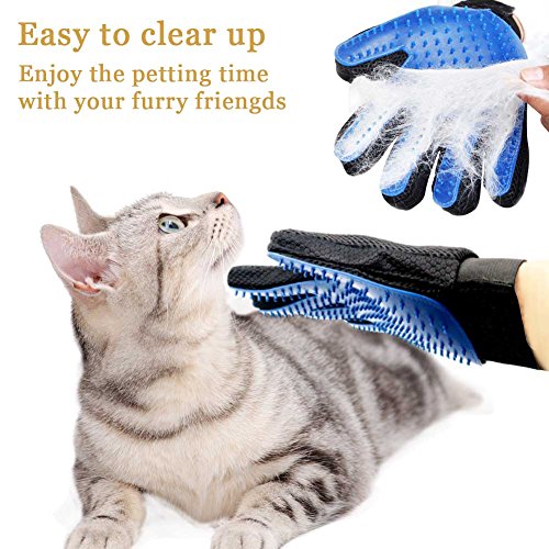 - This Cat Grooming gloves set will Keep your house clean by minimizing cat and dog shedding, easy use and clean