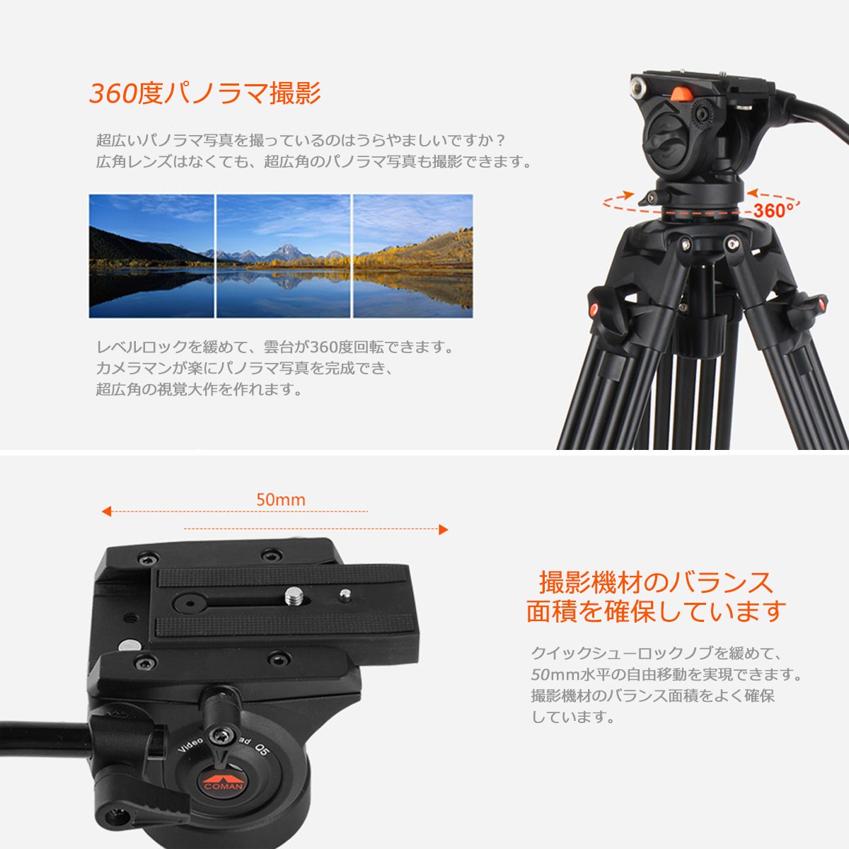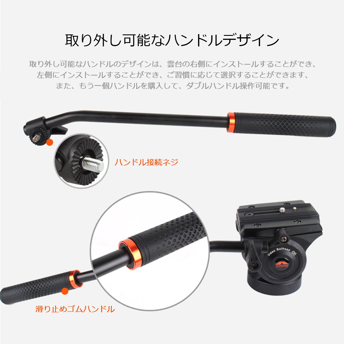 4. For convenient user control, a replaceable pan bar handle with angle adjustment fits to both the left and right sides of the head.