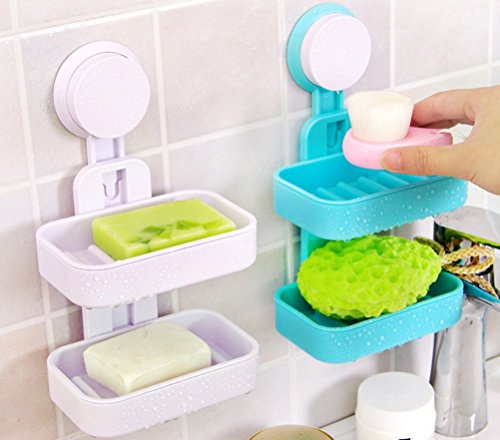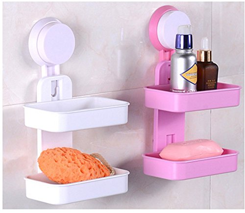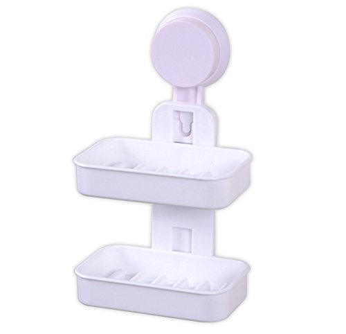 Double-deck Soap Dish with Drain Strong Suction Hold ABS Soap Holder for Bathroom, Shower & Kitchen