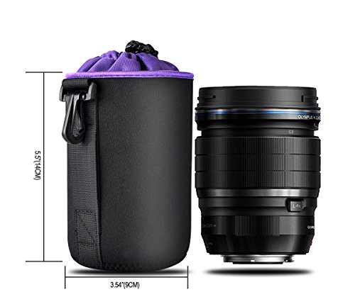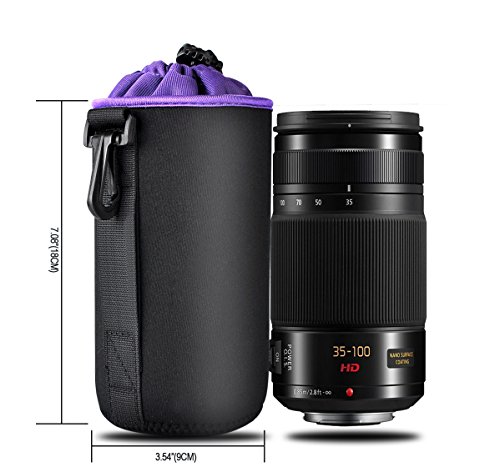 Package: Includes 2 pack Neoprene lens Pouch bags for DSLR Camera Lens + Microfiber Lens Cleaning Cloth. Lens not included in package